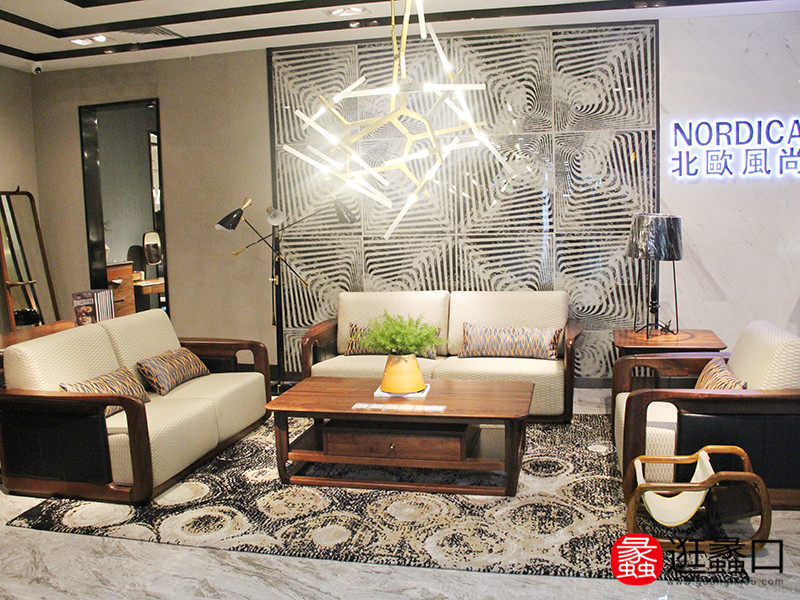 柏森北欧风尚家具北欧客厅北美黑胡桃实木简洁实用沙发组合