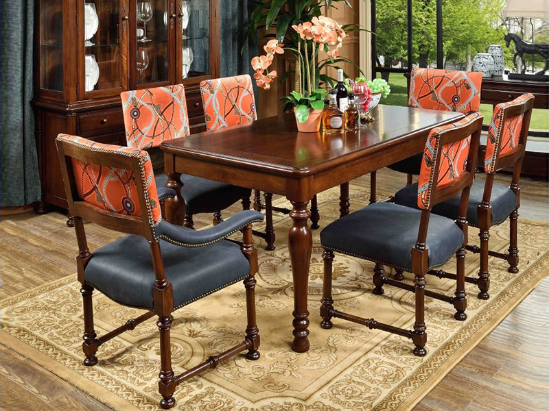 爵典家居·融峰国际家居-艾加里梵美餐厅桃花芯木波士顿长方餐台AJ03-I4M/无扶手餐椅AJ03-K