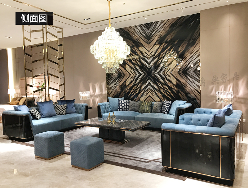 巴夏家具·爵典家居意式轻奢客厅蓝宝石/不锈钢长茶几