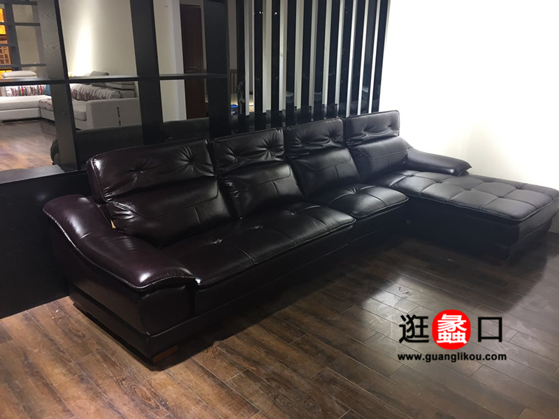 水元素软体家居简约现代客厅深色真皮软靠转角沙发
