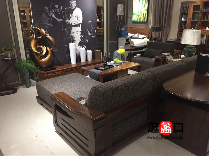 乌金名爵家具中式古典客厅实木布艺软包沙发/茶几
