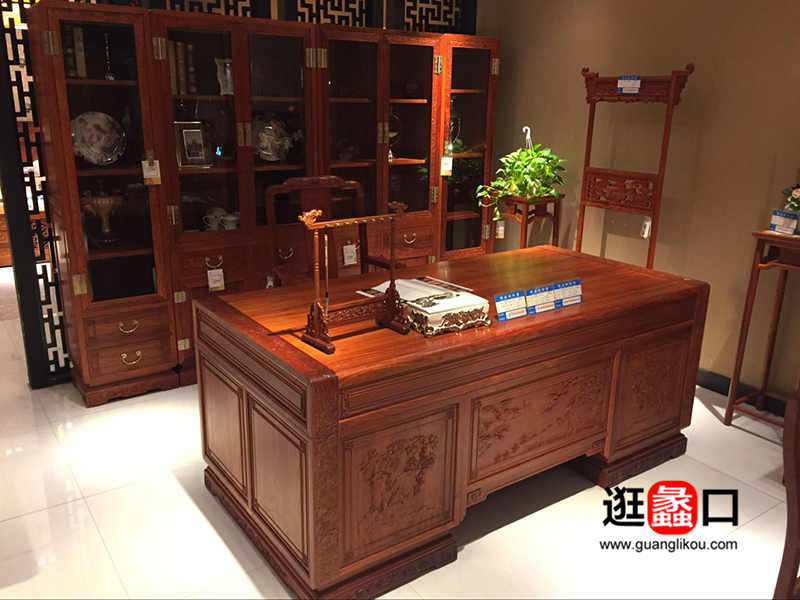 国寿红木家具中式古典书房实木书桌椅/书柜