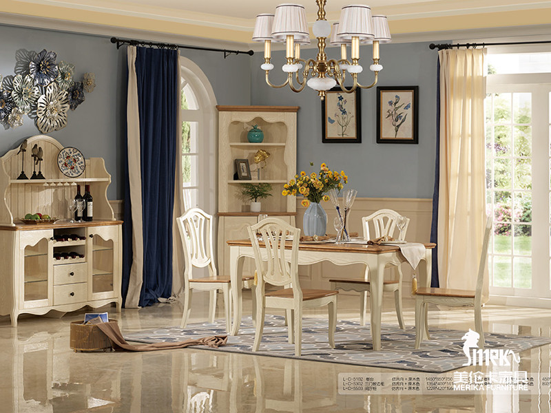 健辉家居·美伦卡家具香缇丽舍美式餐厅白蜡木仿古色加原木色一桌多椅/酒柜MLK021