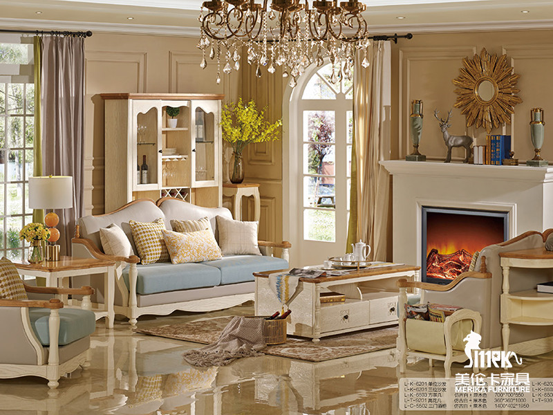 健辉家居·美伦卡家具香缇丽舍美式客厅白蜡木仿古色加原木色沙发/茶几/壁炉MLK017