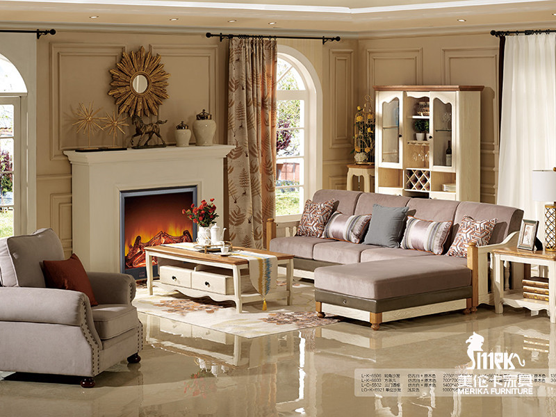 健辉家居·美伦卡家具香缇丽舍美式客厅白蜡木仿古色转角沙发+茶几+壁炉MLK015