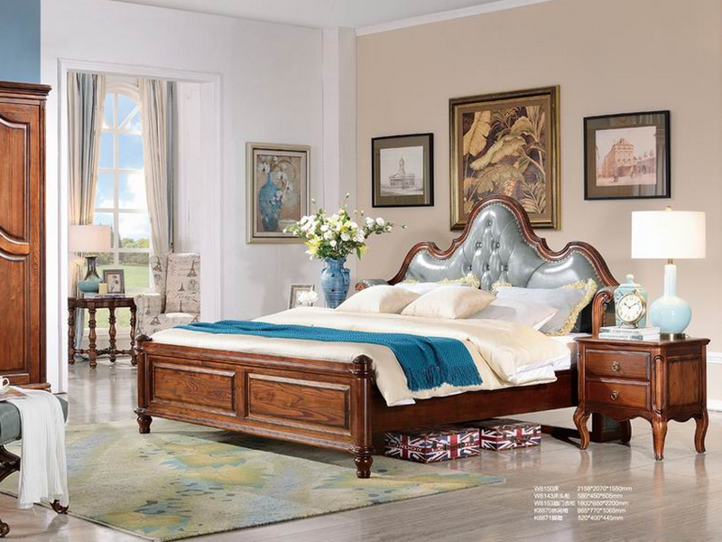 健辉家居·美伦卡家具美式卧室实木双人床W8150/床头柜W8143/梳妆台/婚床/移门衣柜/休闲椅