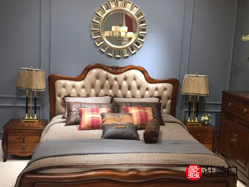 加州海岸家具美式卧室实木皮艺双人大床