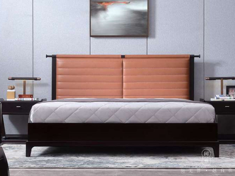 阅界新中式家具新中式卧室紫檀实木时尚艺术双人床+床头柜组合