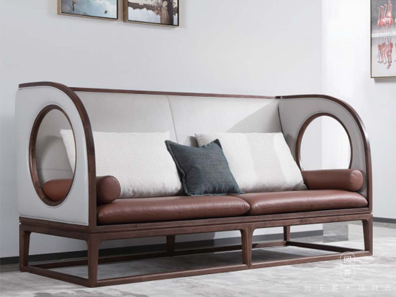 阅界新中式家具新中式客厅北美黑胡桃实木三人位时尚沙发