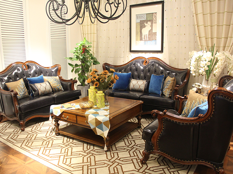 芝加哥家具-全屋定制美式卧室胡桃全实木双人位/三人位/单人位沙发组合/大方几