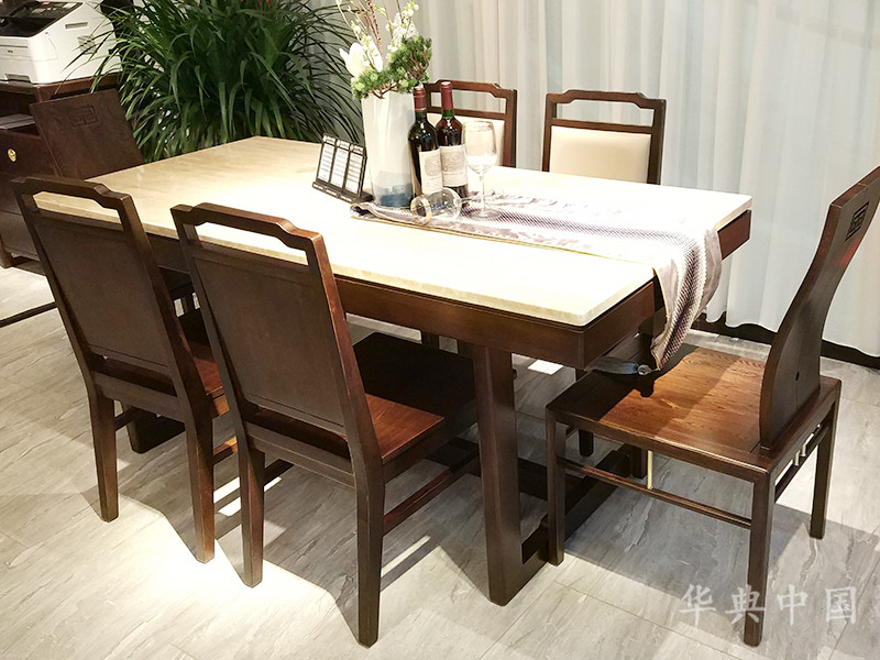 华典中国·欧尚格家居新中式餐厅榆木实木方形六人餐桌椅组合/餐厅家具