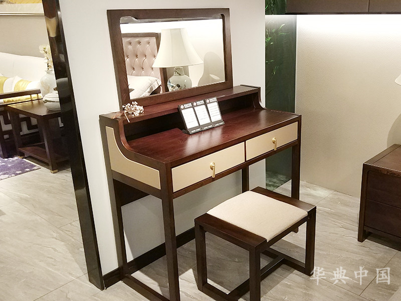 华典中国·欧尚格家居新中式卧室榆木实木优雅带抽屉梳妆台