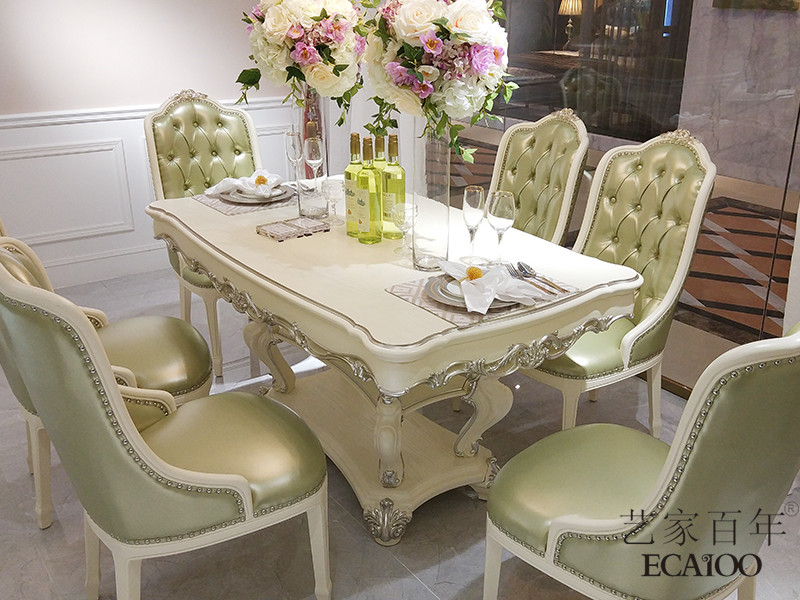 【艺家百年·欧尚格家居】新古典餐厅桃花芯木实木浅色典雅餐桌椅组合