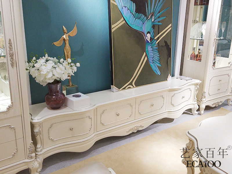 【艺家百年·欧尚格家居】新古典客厅桃花芯木实木浅色典雅电视机柜