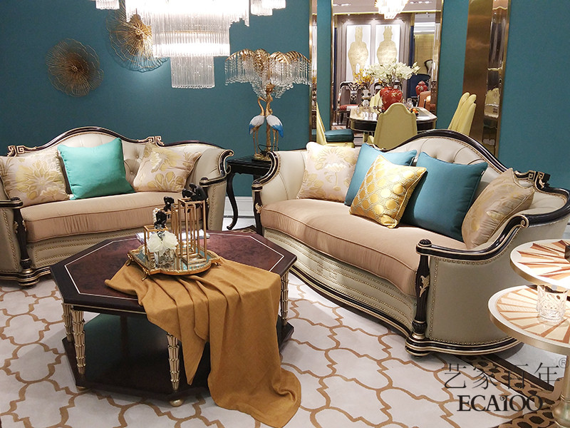 【艺家百年·欧尚格家居】新古典客厅桃花芯木实木沙发茶几组合