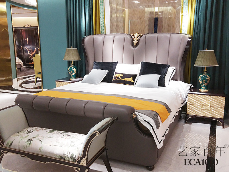【艺家百年欧尚格家居】新古典卧室桃花芯木实木古典大气双人床