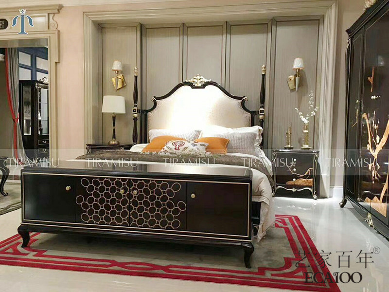 【艺家百年·欧尚格家居】新古典卧室桃花芯实木经典雅致双人舒适大床+床头柜组合