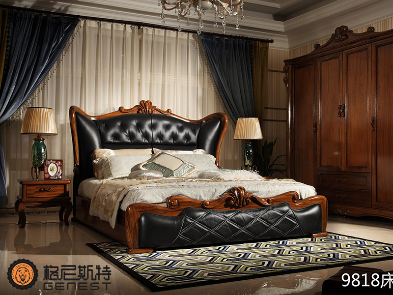 格尼斯特家具欧式卧室乌金木实木9818床+床头柜