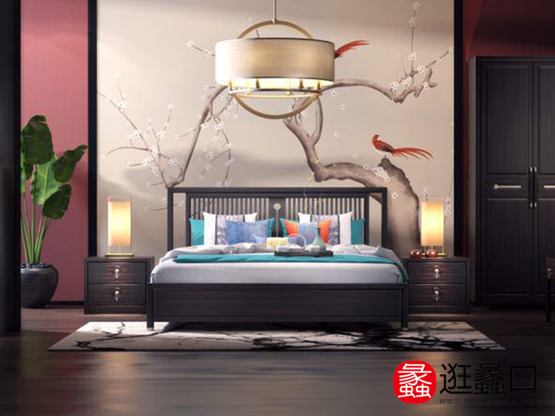熙也家具 苏州工厂直营店 苏州官方旗舰店实木新中式卧室床XY005