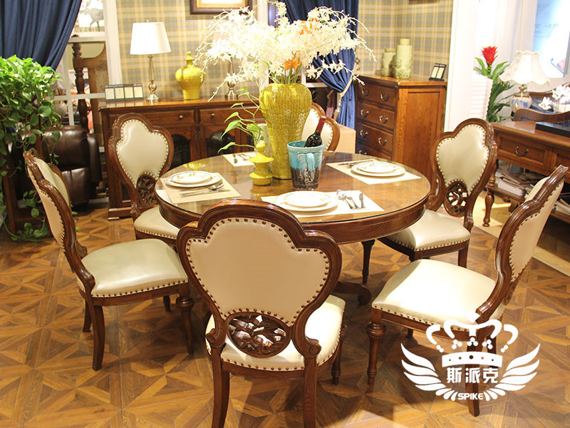 奥斯汀家具美式套房实木家具圆形餐桌头层牛皮餐椅