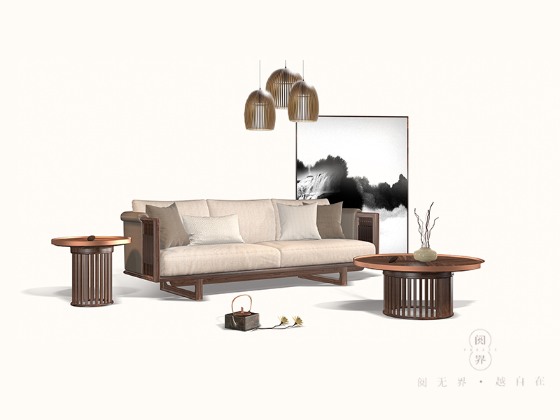 阅界新中式家具新中式客厅北美黑胡桃木实木简约布艺软包沙发组合