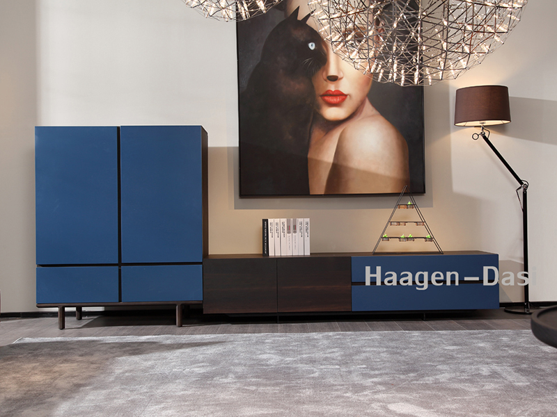 【哈根达私·欧尚格家居】意式现代极简客厅北美白蜡木实木蓝色时尚电视机柜组合