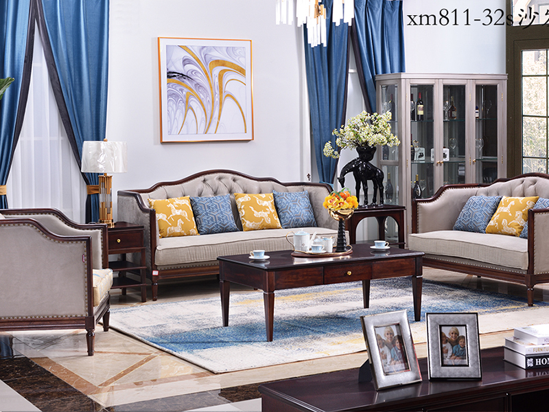 缀美家具美式客厅实木xm811-32沙发组合