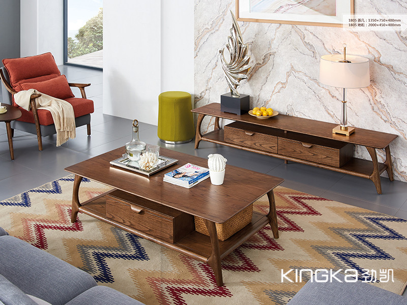 健辉家居·劲凯家具现代北欧客厅北美白蜡木实木简单时尚电视机柜组合JK009