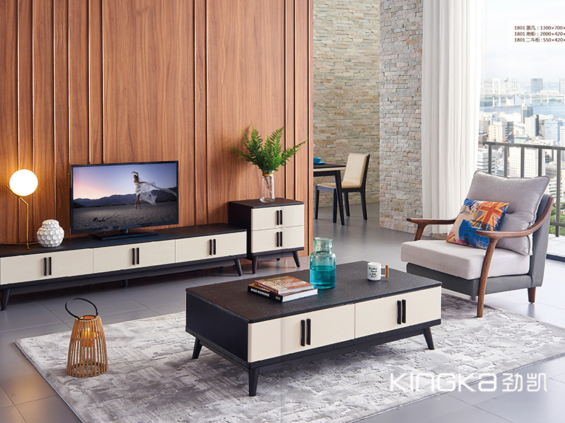 劲凯家居现代北欧客厅北美白蜡木实木休闲可储物电视机柜+茶几组合
