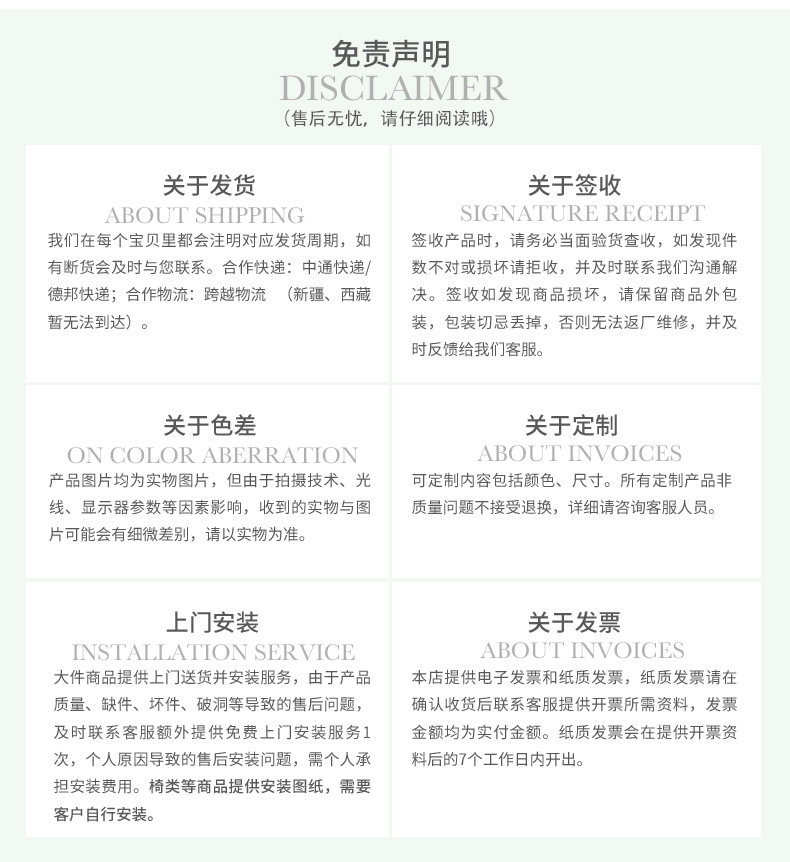 本家具品牌店铺为消费者提供免费保修期一年,人为因素除外。