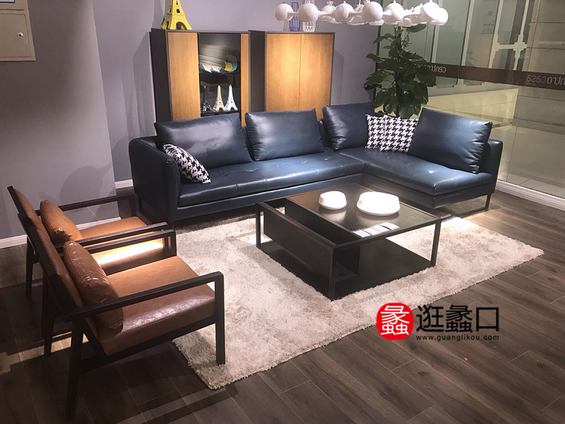 centrocasa尚潮家家具现代极简风格客厅真皮转角沙发组合/茶几