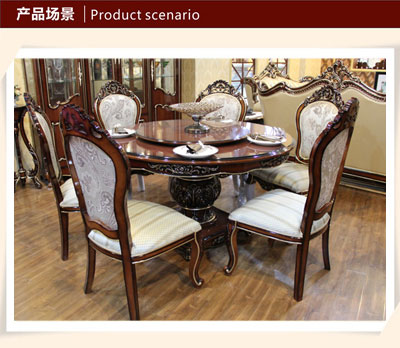 博洛克欧式餐厅圆餐桌椅一桌6椅