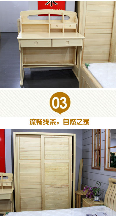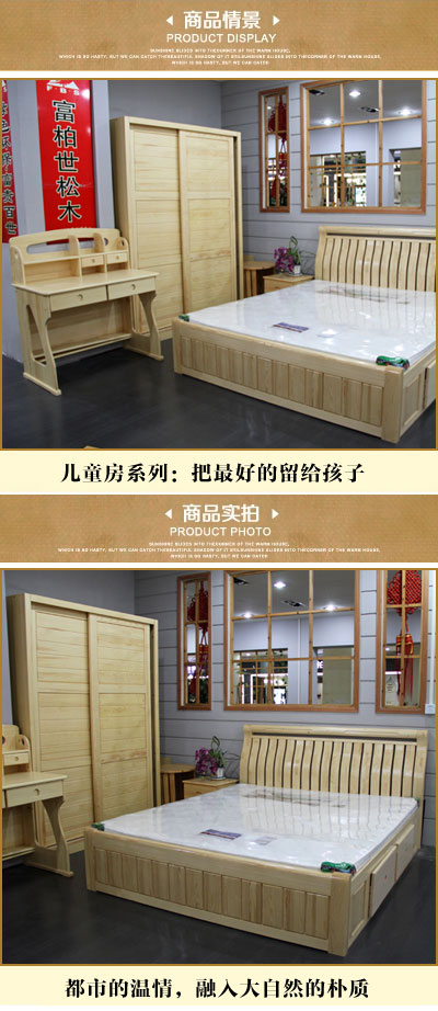 华喜缘俄罗斯樟子松儿童房全套家具卧龙床+推拉衣柜+书台