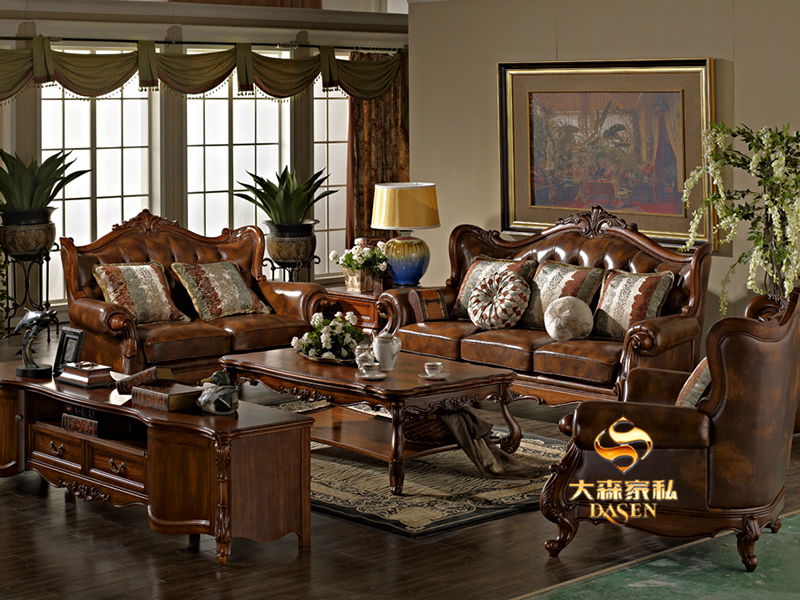 大森家私欧式简欧(小美)宝柏实木真皮双人位/三人位/单人位沙发 实景图Y6010