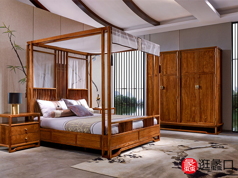 柏森家具新中式卧室刺猬紫檀红木典雅双人舒适大床