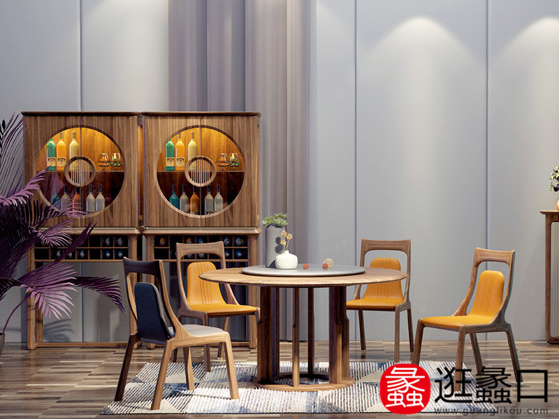 卡纳基·朗森家具新中式餐厅实木大气餐桌椅+餐边柜组合