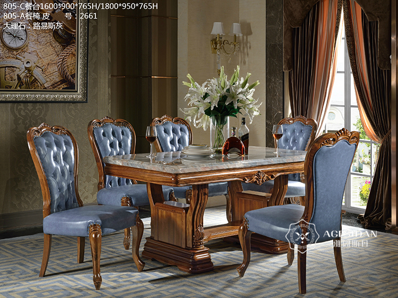 【雅阁斯丹秦·欧尚格家居】欧式餐厅乌金木实木大理石面805-C餐台/805-A餐椅