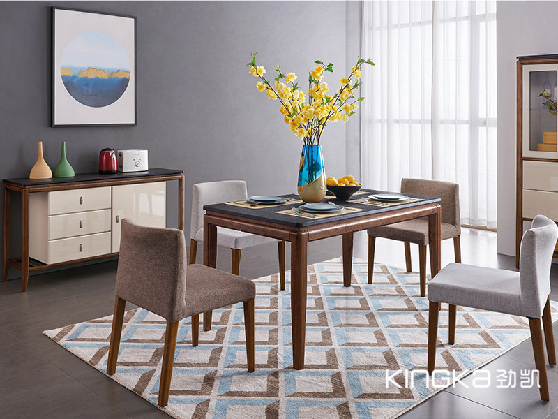 健辉家居·劲凯家具现代北欧餐厅北美白蜡木实木时尚餐桌椅组合JK031