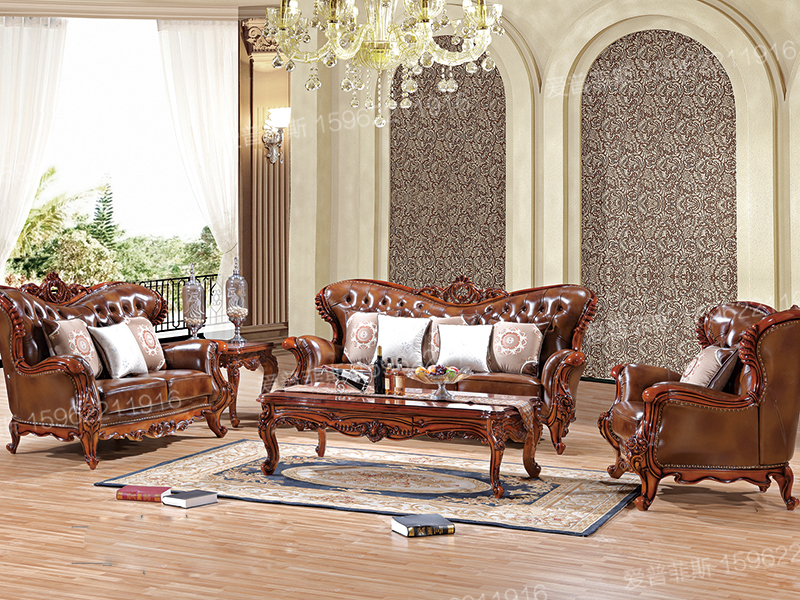爱普菲斯家具新古典客厅实木雕花双人位/单人位/三人位沙发组合A948#