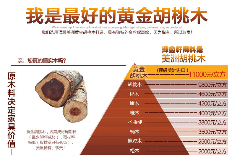 1.主材采用优质非洲进口黄金胡桃木,精心挑选烘干后制作家具