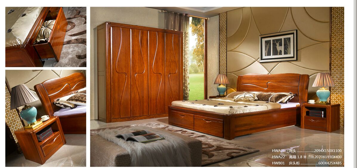 太阳树简约现代卧室床南非红翅木全实木高箱床