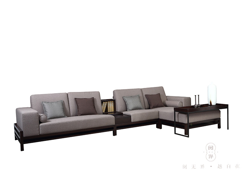 阅界新中式家具新中式客厅黄檀实木时尚简雅带贵妃榻沙发