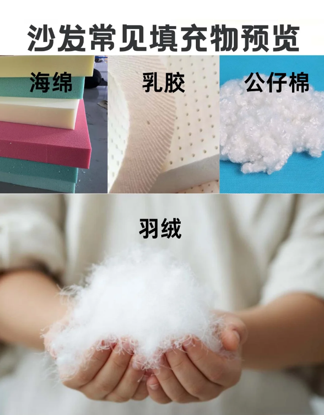 高密度海绵: 密度高、回弹性好,支撑力强,不易塌陷变形,是沙发填充物的首选。