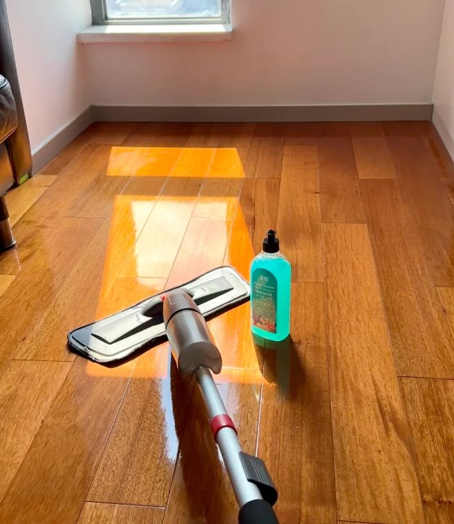 深度清洁: 使用实木地板专用清洁剂,用半干的拖把或抹布擦拭。专用清洁剂不仅能去除污渍,还能在地板表面形成一层保护膜,增加光泽。